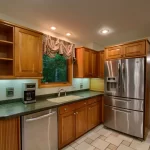 The first floor living is separated well with more public space adjoining the deck, kitchen, entry way; while the powder room, laundry and garage access are on the side of the home office. This home office was previously used as a dining room. However you want to live in the house… changing a light fixture can change the usage very quickly!