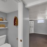 The basement is half finished and half mechanical/ storage. The mechanical storage side houses the furnace, hot water heater, and the laundry. The washer and dryer will stay with the house. The finished side of the basement has a low pile carpet and was a great television and crafting spot for the previous owner. The bathroom in this lower level was beautifully renovated with a tile shower and rich colors.